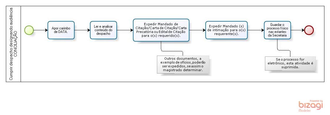 Nos processos com despachos designando audiência de conciliação/preliminar, a Secretaria confeccionará a expedição de mandados/cartas/editais para as partes e intimação de advogados (intimação via Diário da Justiça - procedimento do gabinete).