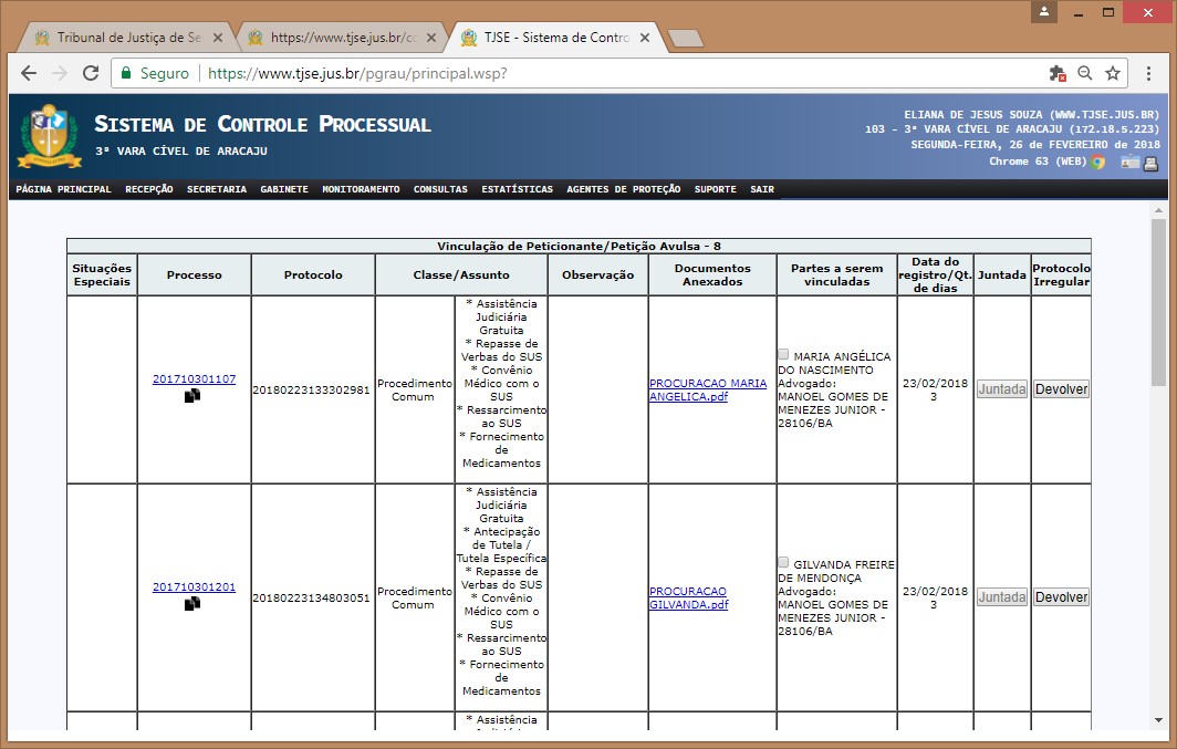 Nesse relatório, além de o Servidor vincular o advogado aos autos, automaticamente é gravada a juntada ao processo de sua procuração/petição.