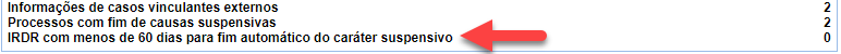 Encerrado o prazo previsto, portanto, o sistema automaticamente impedirá a seleção do IRDR pelas unidades jurisdicionais e resolverá, também de forma automática, todas as causas suspensivas vinculadas ao IRDR com caráter suspensivo vencido.