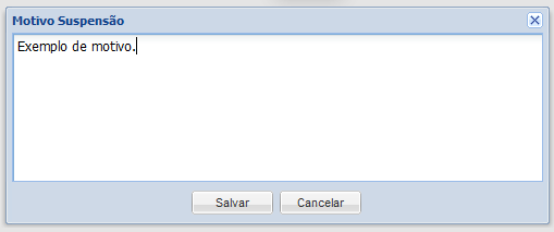 O sistema solicitará que seja especificado o motivo da resolução. Após especifar o motivo, deve-se selecionar a opção "salvar". |