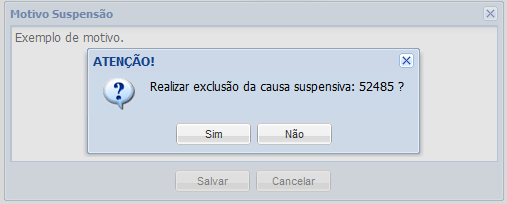 Só podem ser reativados os processos que não possuam causas suspensivas ativas. Caso um processo só possua uma causa suspensiva, contudo, a reativação ocorrerá normalmente, sem necessidade de gerenciamento das causas. |