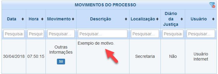 O sistema lançará movimento no processo com o motivo da resolução informado pelo usuário.