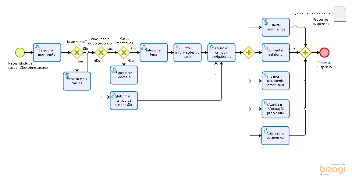 Abaixo segue fluxo em notação BPM do procedimento de suspensão: