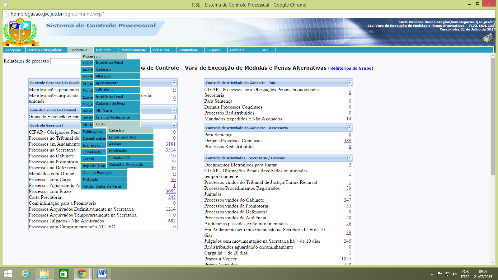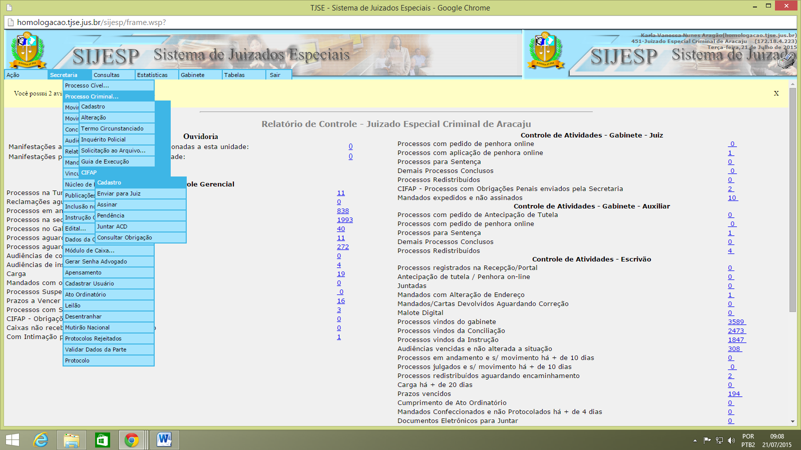 Menu Secretaria >> Processo Criminal >> Cifap >> Cadastro (Sijesp)