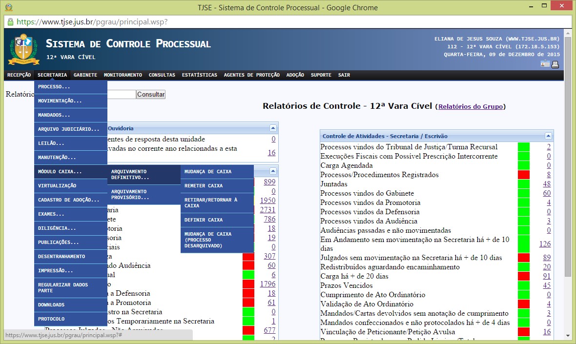 a) CONSULTAR CAIXA. Menu: ‘Módulo Caixa>>Consultar’. Permite consultar os processos físicos arquivados na Secretaria.