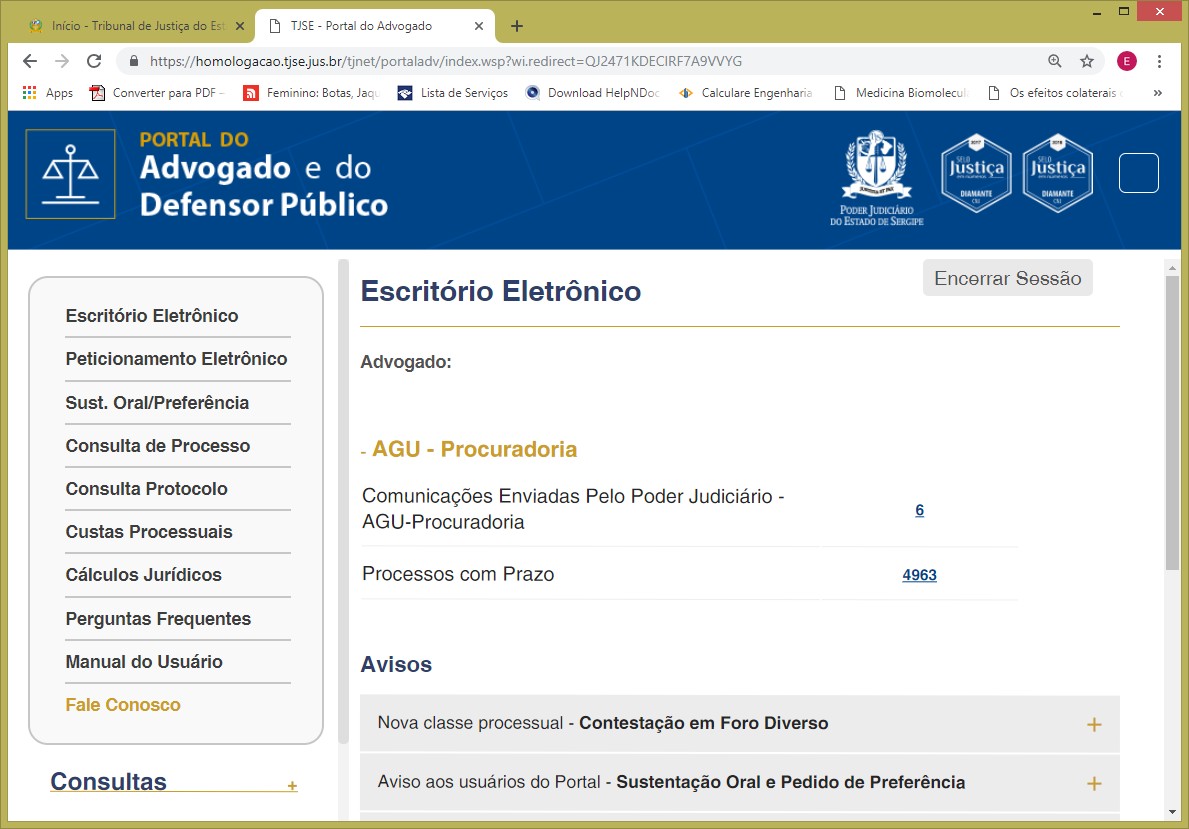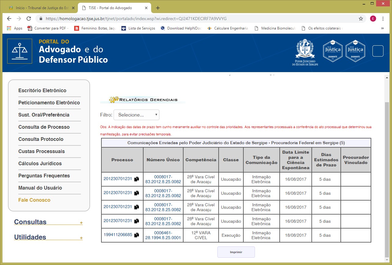 Finalidade: Identificar todos os processos onde foi expedida intimação e citação eletrônica pelo Tribunal de Justiça de Sergipe para a Advocacia Geral da União-AGU, através de suas procuradorias especializadas.