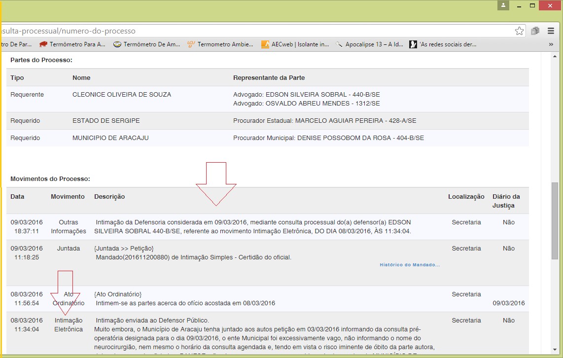 Portal do Advogado. Os processos, onde foram gravados os movimentos acima, são registrados no Portal do Advogado, através de relatórios de controles. Os membros dos órgãos visualizam as intimações e a íntegra dos processos eletrônicos. No caso da Procuradoria do Município de Aracaju e Procuradoria do Estado de Sergipe, os seus servidores também visualizam as intimações por meio de sistema interno interligado ao do TJSE.
