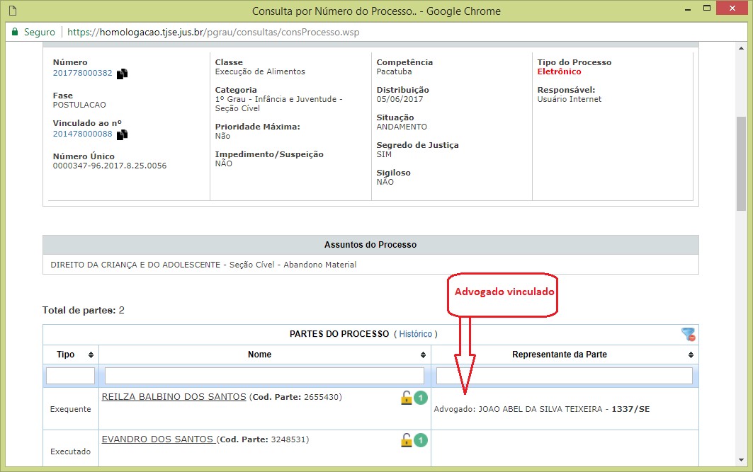 Se a parte representada pelo advogado ainda não estiver cadastrada no processo (exemplo: terceiro interessado), o advogado selecionará a opção 'SIM" para não se vincular aos autos, uma vez que a inclusão da parte no polo ativo/passivo dependerá de decisão judicial. |