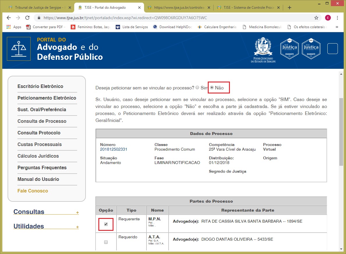 Durante o protocolo da petição avulsa no Portal do Advogado, o advogado poderá solicitar a sua vinculação aos autos. Para que o sistema informatizado reconheça esta solicitação, é necessário que se clique em campos específicos que serão explicados logo abaixo.