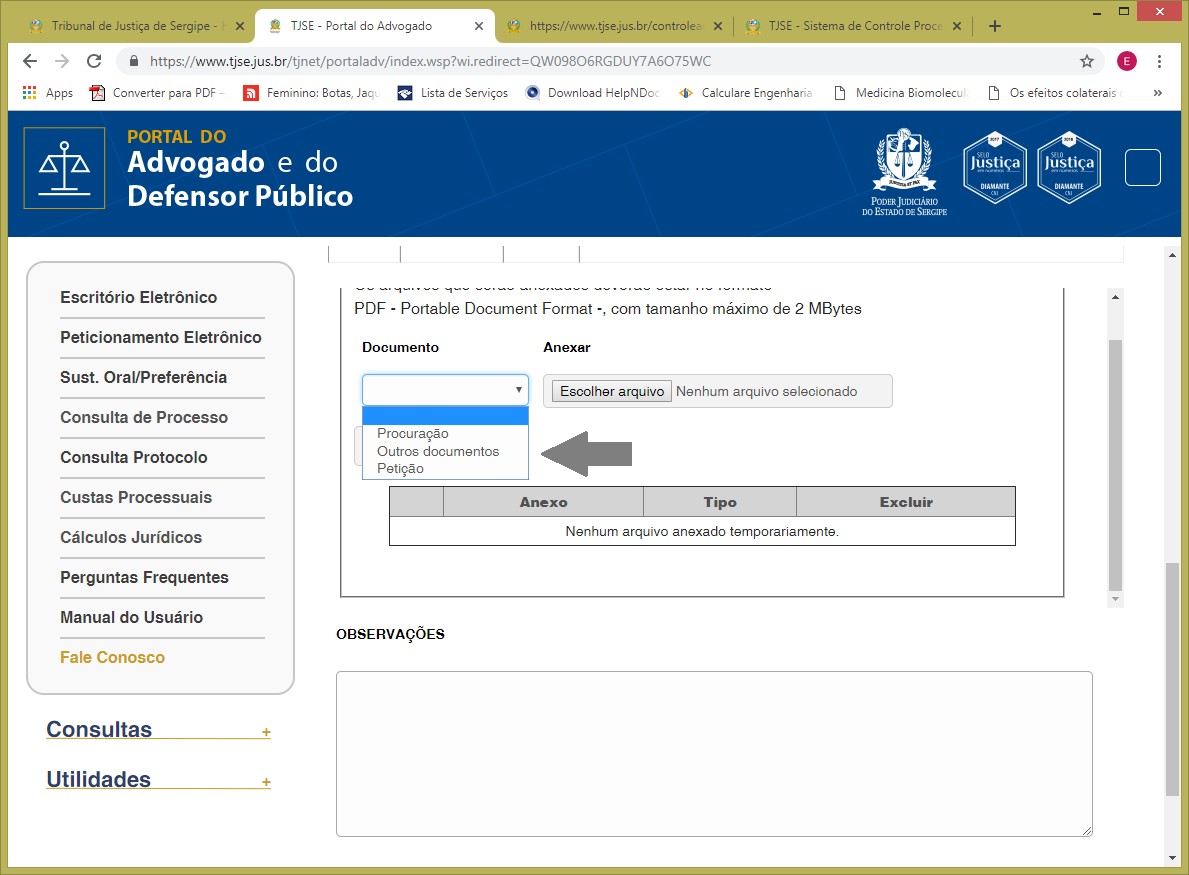 Passo 7: Informar o tipo de documento (procuração/petição), escolher e anexar documento,