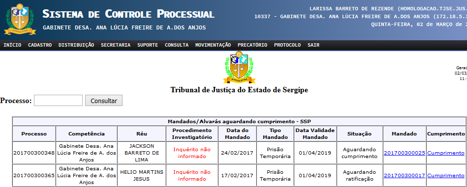 O registro alimentará o relatório “Cumprimentos de mandado de prisão ou de alvará de soltura pendentes de confirmação”.