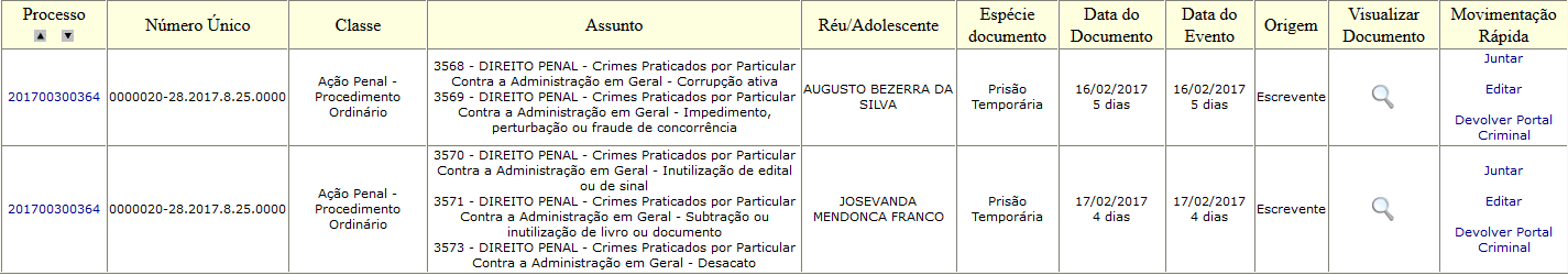 b) Devolver Portal Criminal (para correção) - Verificada a imprecisão nos dados ou no arquivo enviado pelo Portal Criminal, e não sendo possível a retificação pelo próprio servidor, deve ser feita a devolução indicando o motivo na caixa de diálogo.