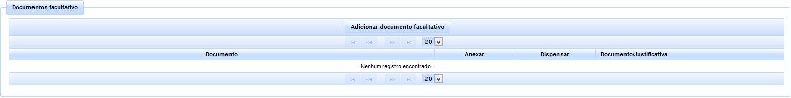 Nesta aba, deverá o usuário anexar ao formulário os documentos obrigatórios ou justificar a sua ausência, havendo, ainda, a possibilidade de anexar outros documentos facultativos.