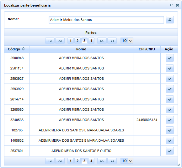 Nesse ínterim, o sistema validará se a parte possui CPF ou CNPJ cadastrado. Caso não possua, deverá o usuário proceder à devida atualização do cadastro da parte, inserindo aludida informação, sem a qual não será possível prosseguir com a identificação do credor na elaboração do ofício precatório.