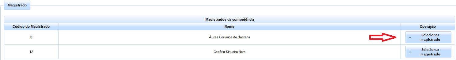 , avistável ao lado do nome desejado constante na lista de Magistrados cadastrados na unidade jurisdicional.