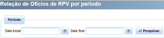 O sistema permitirá ao usuário a consulta das RPV’s Expedidas em determinado período pela Unidade Jurisdicional, ao inserir a data inicial e/ou a data final.