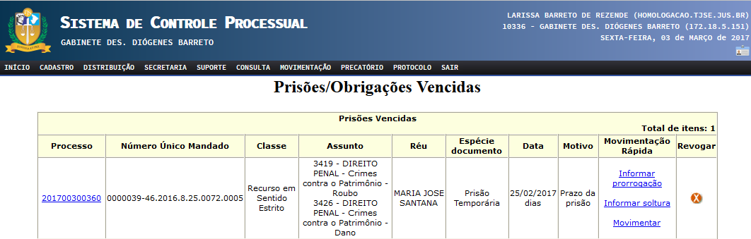 Após o cumprimento do mandado de prisão temporária, será alimentado o relatório do Portal Criminal “PRISÕES TEMPORÁRIAS – Em curso”, através do qual o usuário irá acompanhar as prisões que estão por expirar o prazo.