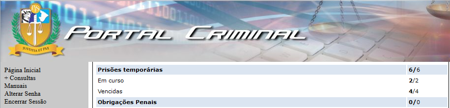 Figura 30- Tela do Portal Criminal- Pagina inicial