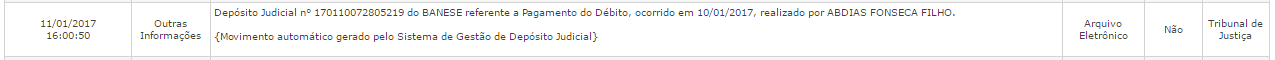 Após o pagamento e respectiva compensação, automaticamente, aparecerá na movimentação processual a seguinte informação: