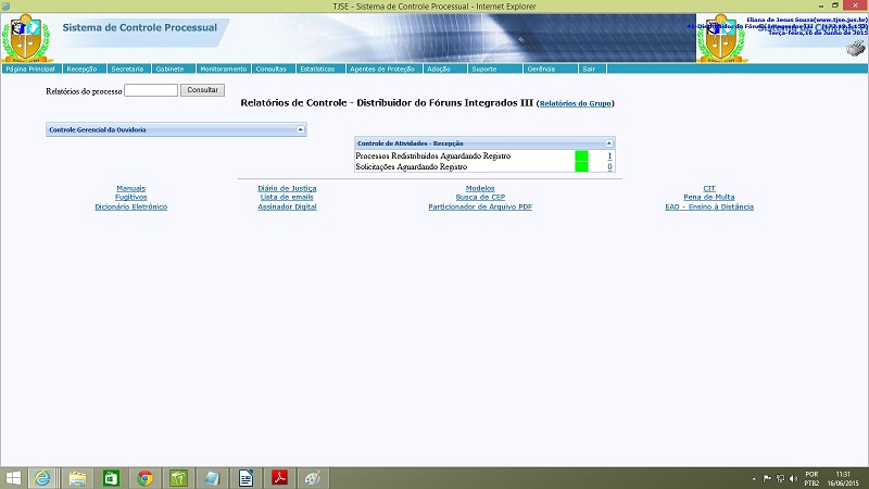 Esta ferramenta estar inativa em razão da expansão da virtualização de processos CÍVEIS no estado. Com a expansão do sistema informatizado de processo eletrônico (competência cível), as distribuições de feitos cíveis eletrônicos foram transferidas para o relatório de controle denominado 'Solicitações Aguardando Registro', que será explicado adiante. |