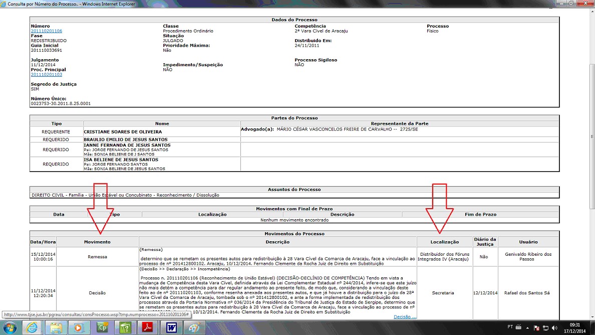 - constar no sistema como última localização o nome do Fórum para o qual foi encaminhado para redistribuição.