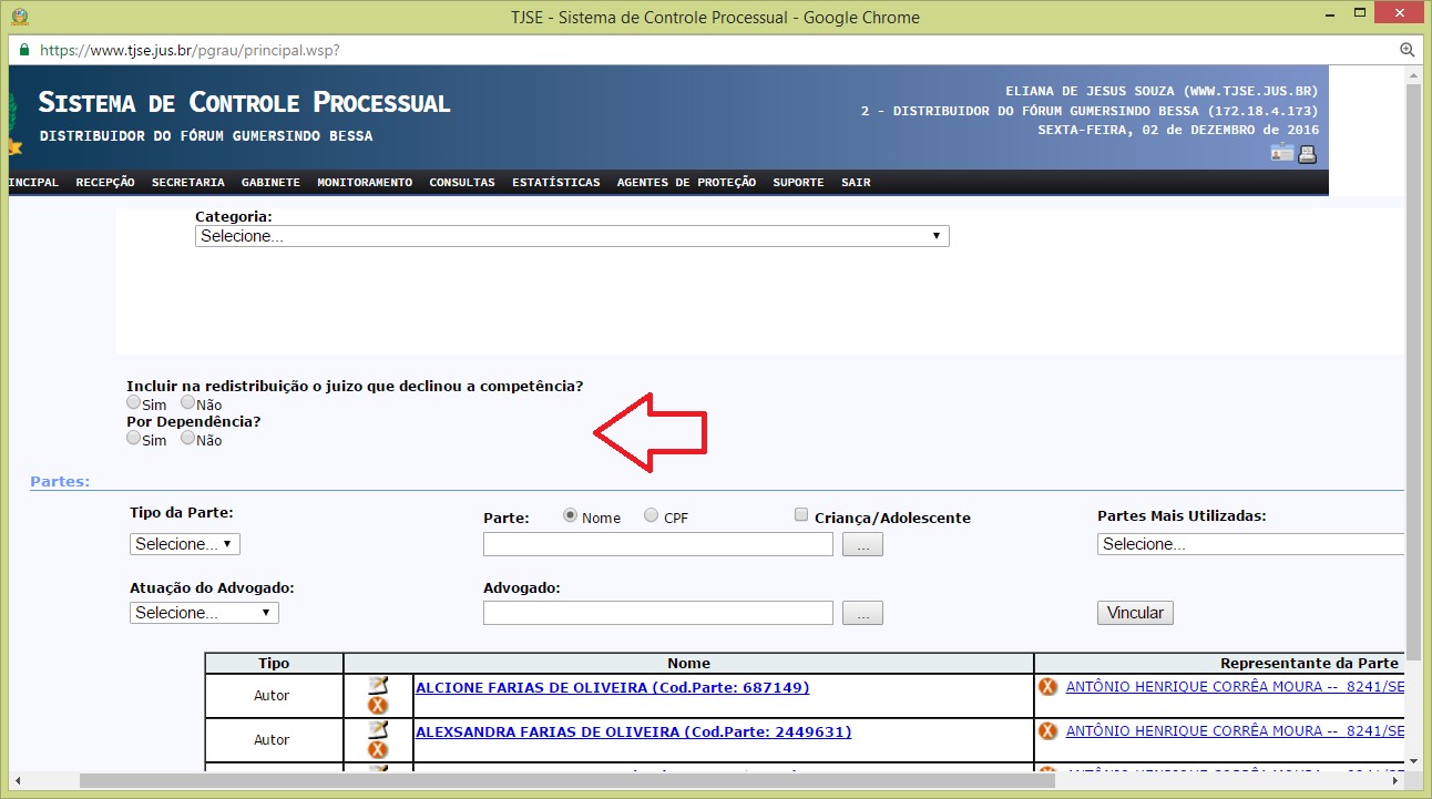 REDISTRIBUIÇÃO DE PROCESSOS NO SISTEMA DE CONTROLE PROCESSUAL - SCP