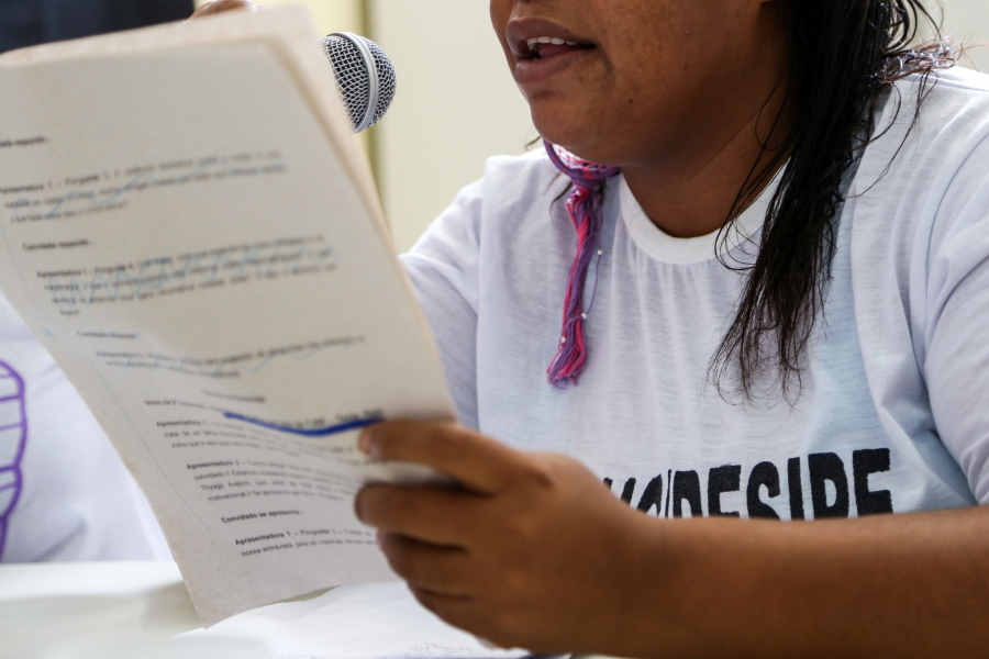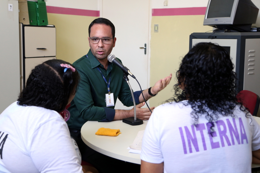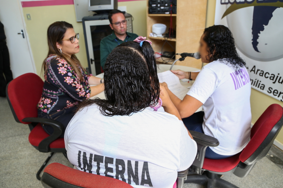 “Recomeçar é extremamente difícil e nós, do sistema de Justiça, temos que apoiá-las”, enfatizou a Juíza Iracy Mangueira, da Coordenadoria da Mulher do TJSE. Ela foi entrevistada em um programa de rádio interno pelas detentas C.D. e K.S., que também recitaram para magistrada poemas sobre violência contra a mulher e preconceito racial, respectivamente. “No tempo vago, saímos de cela em cela perguntando para as colegas o que elas queriam que a gente perguntasse para Juíza. Isso foi algo novo para gente”, confessou K.S.