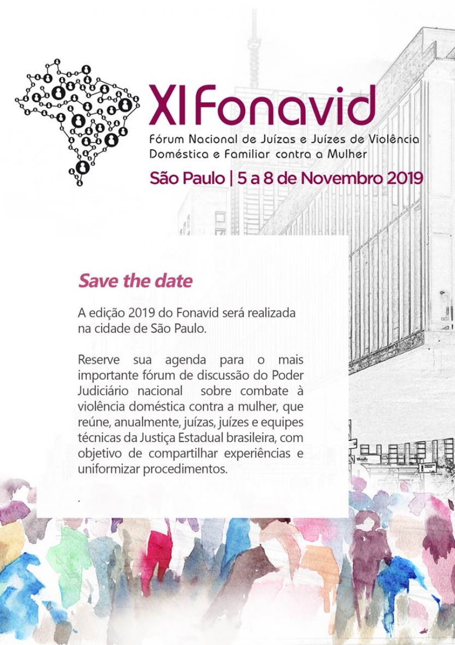 O Fonavid (Fórum Nacional de Juízas e Juízes de Violência Doméstica e Familiar contra à Mulher) será realizado em São Paulo de 05 a 08 de novembro.