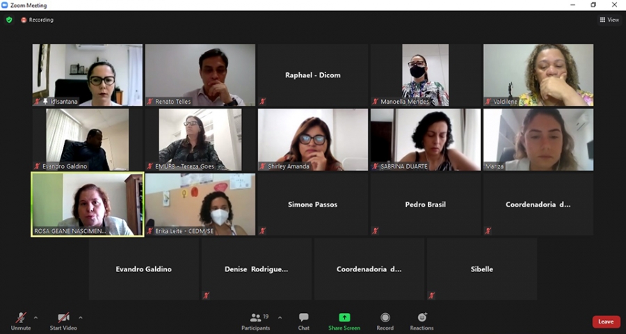 Também participaram da reunião a Secretária Municipal de Assistência Social de Aracaju, Simone Passos e a Coordenadora de Políticas Públicas para Mulheres, Edlaine Sena; o Secretário Municipal de Governo, Evandro Galdino; o representante da SEGOV Carlos Américo; e da SEIAS, Pedro Brasil, Sibelle Sá e Valdilene Martins.