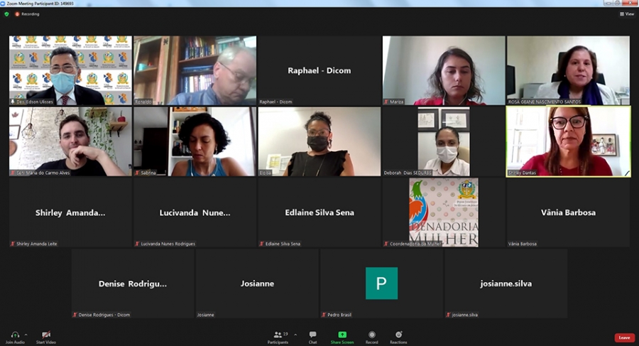 A reunião, ocorrida por videoconferência nesta segunda-feira, dia 07, contou com o Presidente do TJSE, Edson Ulisses de Melo; a Juíza Coordenadora da Mulher Rosa Geane Nascimento e sua equipe; com a Secretária de Estado da Assistência Social, Lucivanda Nunes e representantes da SEIAS; a assessoria da Senadora Maria do Carmo Alves e da Vice-Governadora Eliane Aquino; além de representantes do Ministério da Mulher, da Secretaria de Estado de Desenvolvimento Urbano e Sustentabilidade (SEDURBS), da Secretaria Municipal da Fazenda (SEMFAS) e do ProjertarSE.