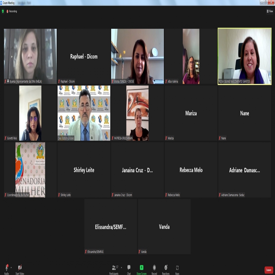 A Coordenadoria da Mulher do Tribunal de Justiça de Sergipe (TJSE) reuniu por videoconferência, na manhã da última sexta-feira, 11/03, representantes dos Poderes Judiciário, Executivo e Legislativo para discutir a implementação de serviços previstos na Lei Maria da Penha. Além disso, a equipe da Coordenadoria visitou o Juizado de Violência Doméstica e Familiar contra a Mulher, no Fórum Gumersindo Bessa. Os dois eventos encerraram a programação da 20ª Semana Nacional da Justiça pela Paz em Casa.