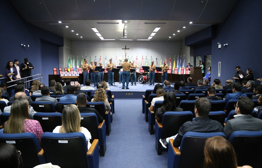 A solenidade de hoje foi aberta pela banda de música do Corpo de Bombeiros de Sergipe. Composta por 22 músicos e regida pelo capitão Lealdo Batista, a banda foi fundada em agosto de 1963. Ao lado do auditório, no hall do Anexo I, os participantes puderam conferir a exposição fotográfica Flor de Lótus e ver os produtos da feirinha de empreendedorismo de mulheres atendidas pelos Crams.