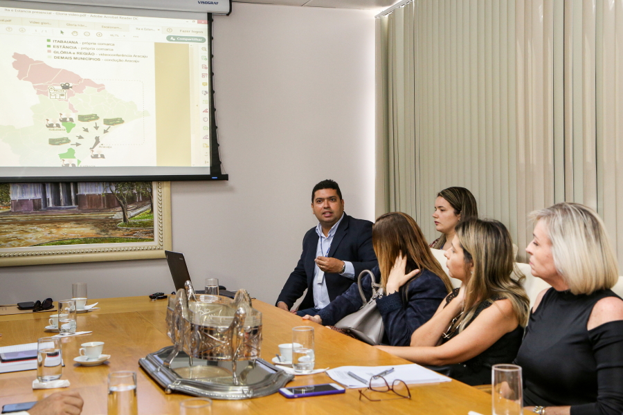 O Desembargador Diógenes Barreto, Supervisor do GMF/SE, os Juízes Auxiliares da Presidência, Ana Bernadete Leite de Carvalho e Marcos Pinto e Juíza Corregedora Brígida Declerc Fink se encontraram com os juízes de Estância, Itabaiana, Tobias Barreto, N. Sra. da Glória, Canindé de São Francisco, Poço Redondo, Porto da Folha, Gararu, Monte Alegre, N. Sra. de Lourdes e São Miguel do Aleixo.