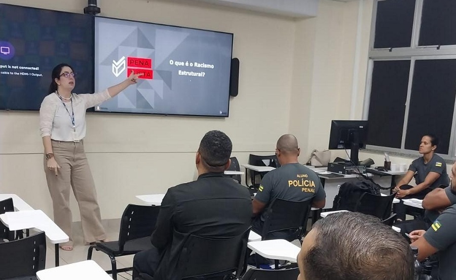As servidoras Acácia Bitencourt e Paola Arce, secretárias do Comitê Estadual de Políticas Penais, a convite da Escola de Gestão Penitenciária de Sergipe, ministraram no dia 14/08, na Escola do Governo, da Secretaria de Administração e no dia 18/08, na Escola de Gestão Penitenciária de Sergipe (EGESP), palestras sobre o tema "PLANO PENA JUSTA", para 16 alunos (12 homens e 4 mulheres) do Curso de Formação dos Novos Policiais Penais de Sergipe.